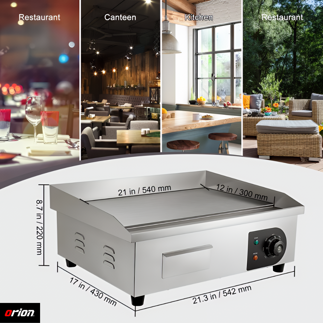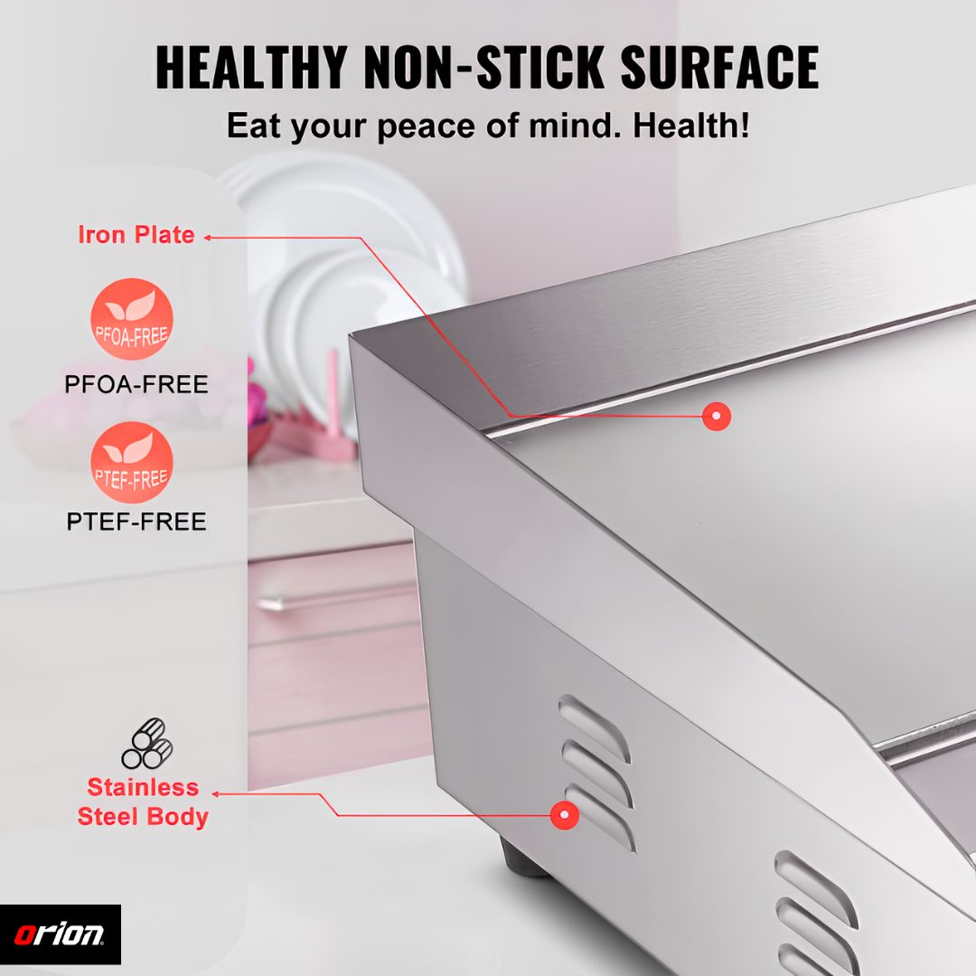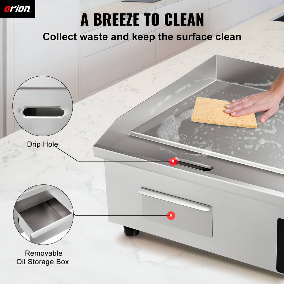 This griddle is built tough. We use the Orion Blaze daily in our café for eggs, pancakes, and paninis — it never misses a beat. The stainless steel looks professional and still shines after weeks of use. Great quality and value for any small business!