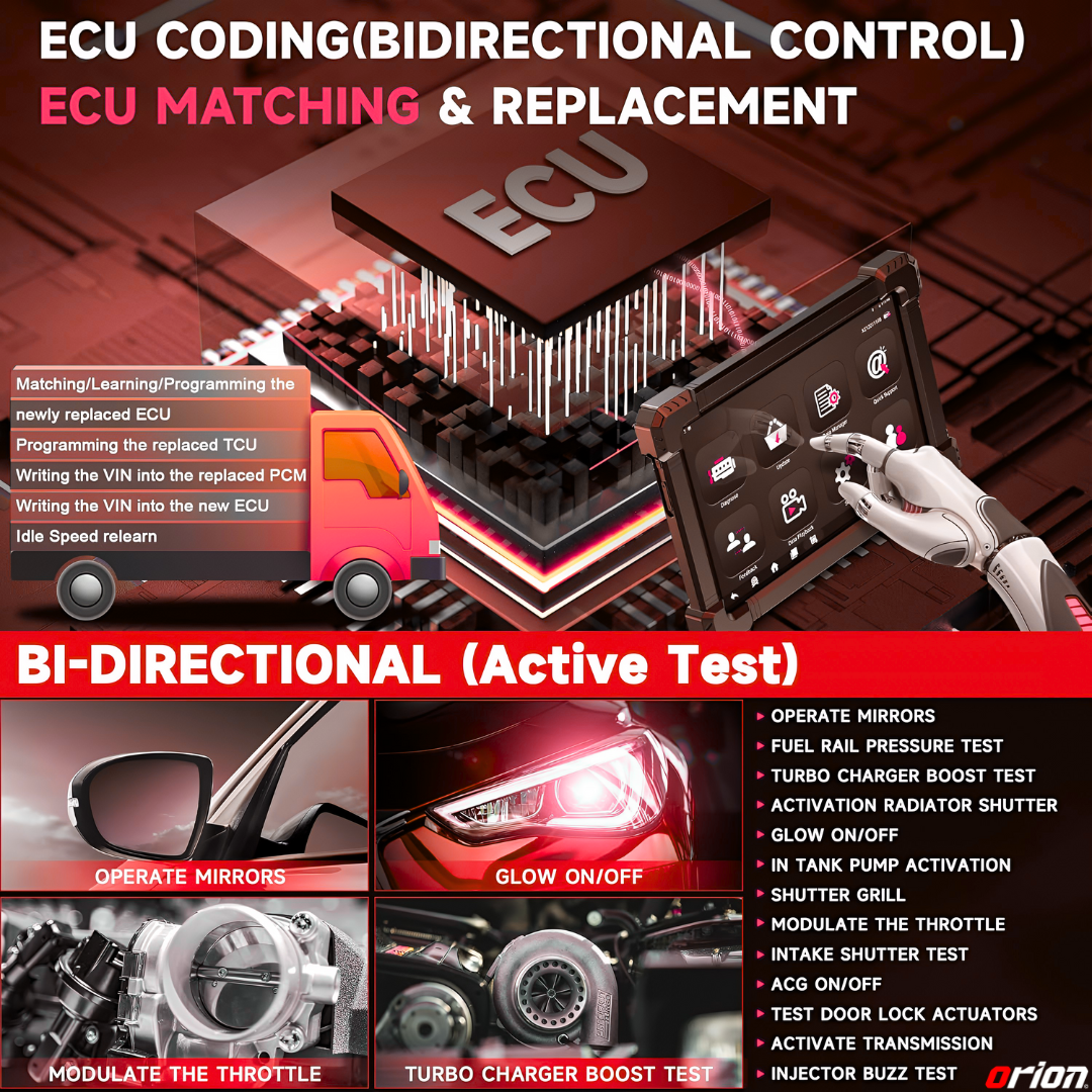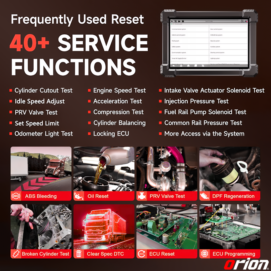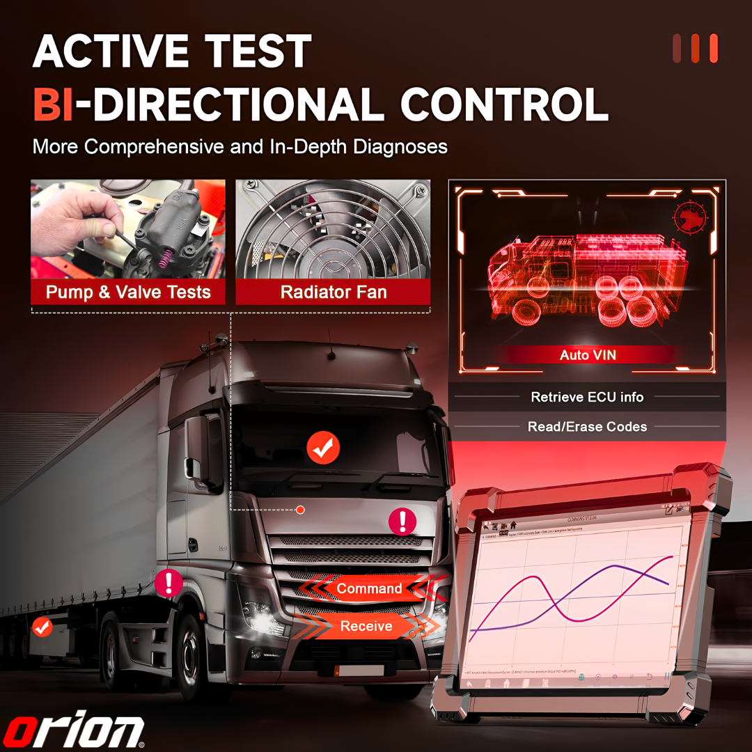 Yes. With powerful bidirectional control, Orion DieselLink™ allows you to perform component activations, system resets, and calibration tests — giving you the same control level as OEM diagnostic tools.