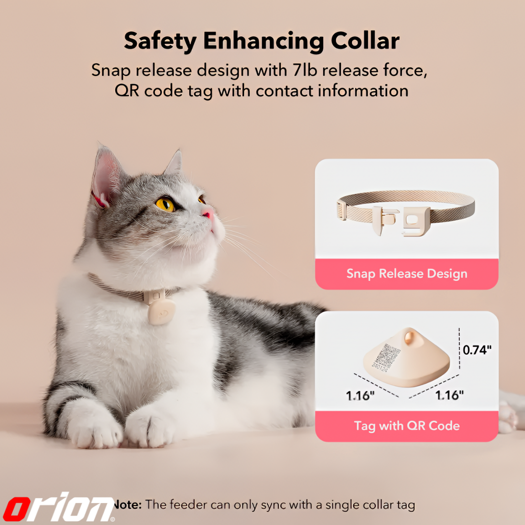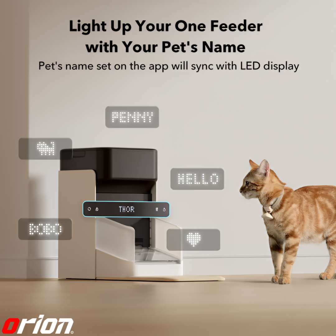 The Orion FeedOne™ features a 3-liter food capacity, 5G Wi-Fi control, LED light collar tag, and a sleek, space-saving design that fits easily into any home.