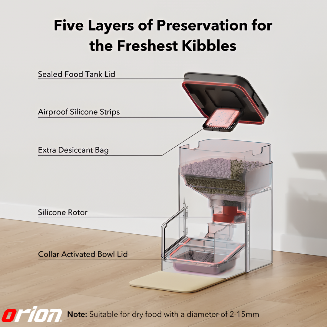 Perfect for busy pet owners, multi-pet homes, or frequent travelers. Whether you’re at work, on vacation, or just want a hands-free feeding routine, Orion FeedOne™ adapts effortlessly to your lifestyle.