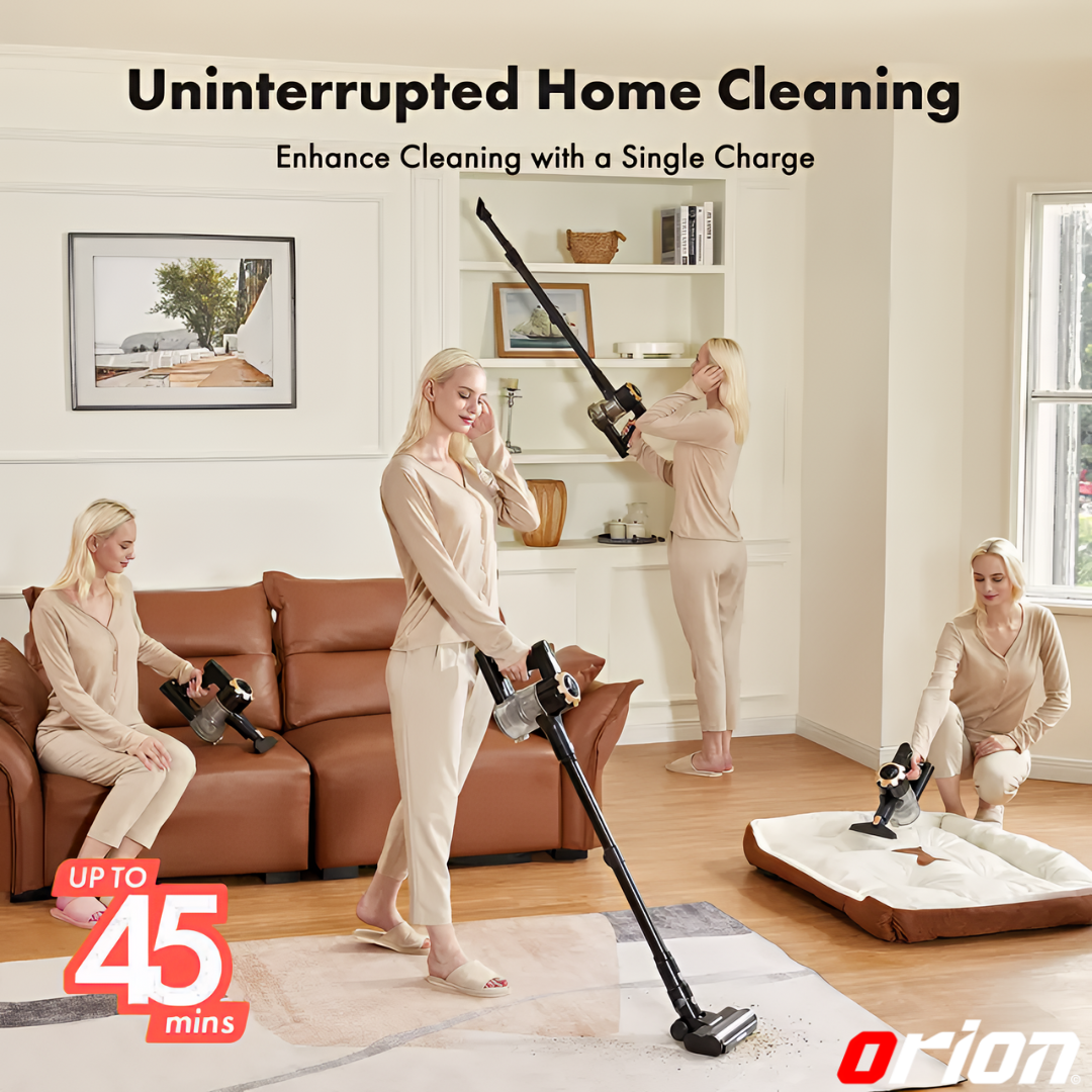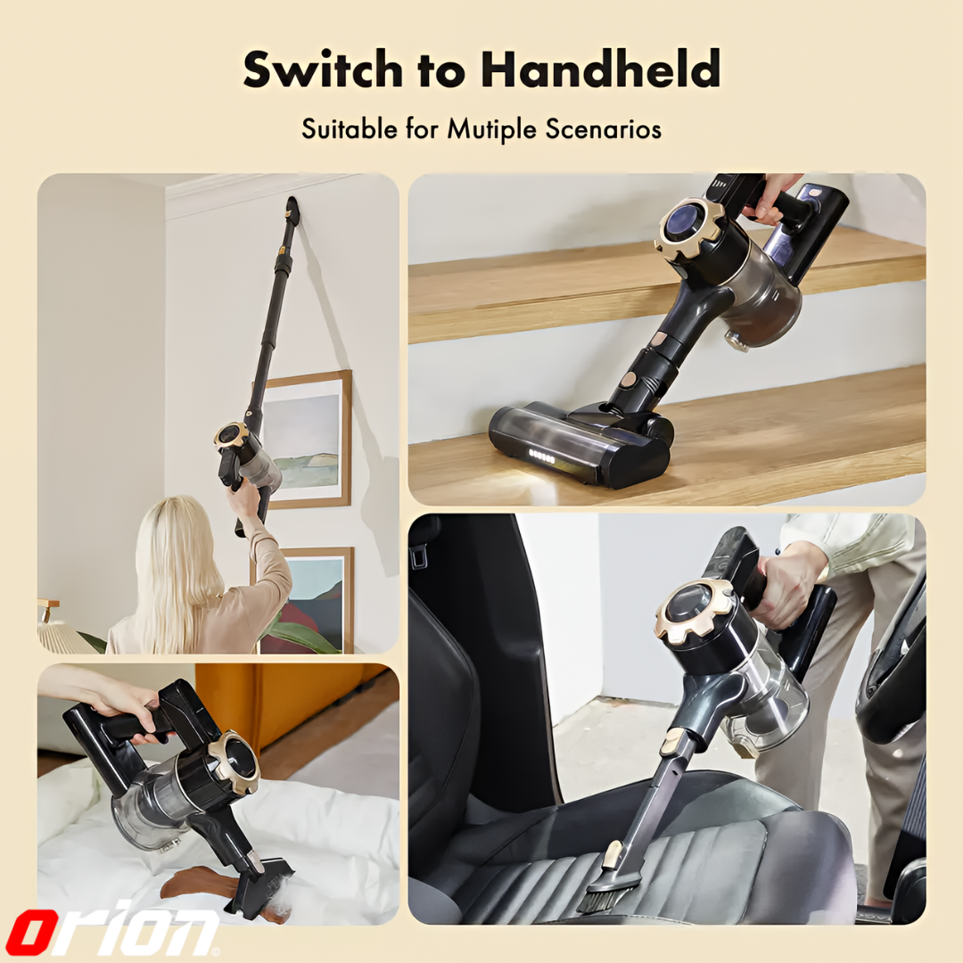 Designed for versatility, the Orion HyperVac™ performs flawlessly on carpets, rugs, tiles, and hardwood floors. It’s also ideal for cleaning furniture, cars, and tight spaces thanks to its 8-in-1 convertible design.