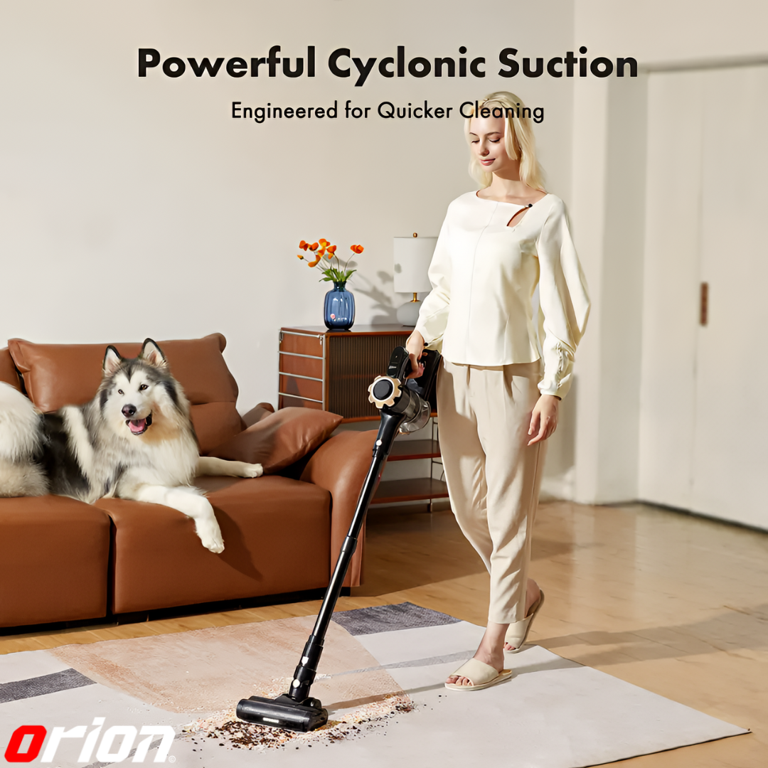 Absolutely. With its 33Kpa of powerful suction, the Orion HyperVac™ captures dust, debris, and pet hair from carpets, tiles, and hardwood floors. Its advanced filtration ensures a thorough, hygienic clean every time.