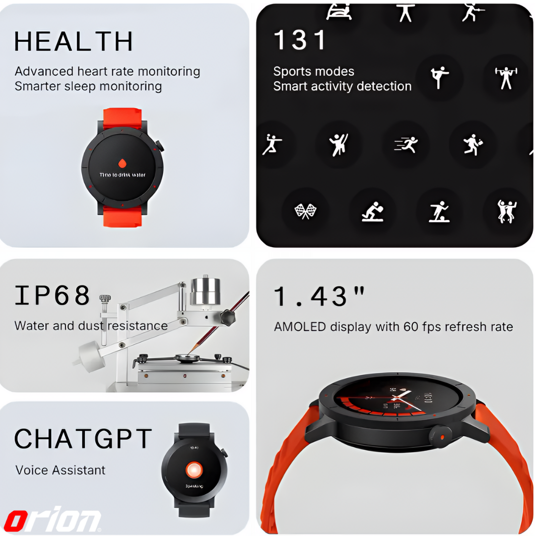 I love how simple and smooth the setup was — just connect and go! The Orion Apex handles calls, messages, and tracking effortlessly. I wear it all day at work and during runs, and it’s comfortable and accurate. Battery life is amazing, and the waterproof feature gives me peace of mind everywhere I go.
